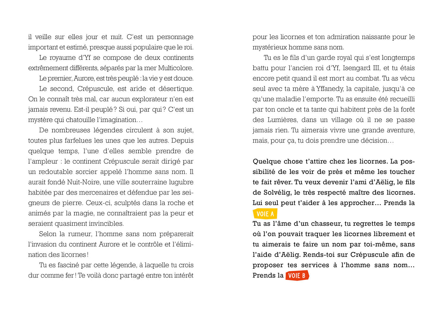 Deux choix s’offrent à toi : protéger ces animaux merveilleux aux côtés d’Aëlig, le fils du maître des licornes… ou devenir un chasseur de licornes sans foi ni loi, à l'affût de la gloire et de la fortune aux côtés du terrible homme sans nom. Quelle(s) vie(s) choisiras-tu?
