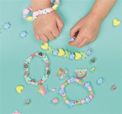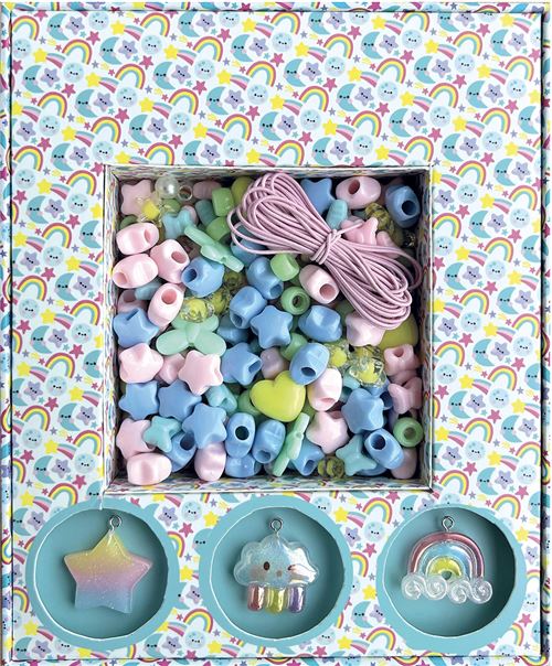 Dès 3 ans, l’enfant trouvera dans ce coffret un assortiment de 230 perles de couleurs et de formes différentes, ainsi que des breloques fantaisie whaouh!