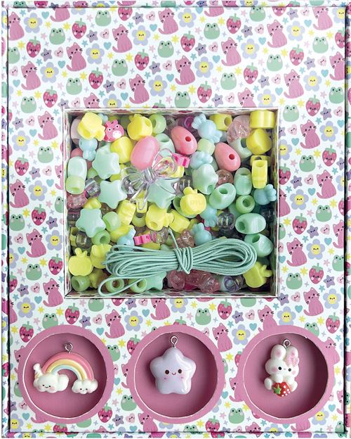 Dès 3 ans, l’enfant trouvera dans ce coffret un assortiment de 230 perles de couleurs et de formes différentes, ainsi que des breloques fantaisie whaouh!