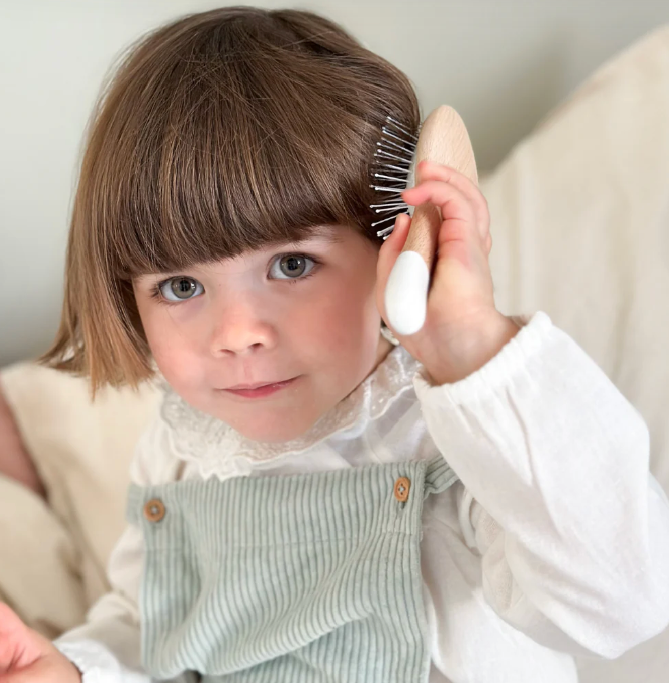 - La brosse démêlage Bachca qui démêle efficacement mais tout en douceur grâce à ses picots nylon sur leur socle de caoutchouc. C'est la brosse préférée des petites filles et des parents pour éviter les crises le matin.
