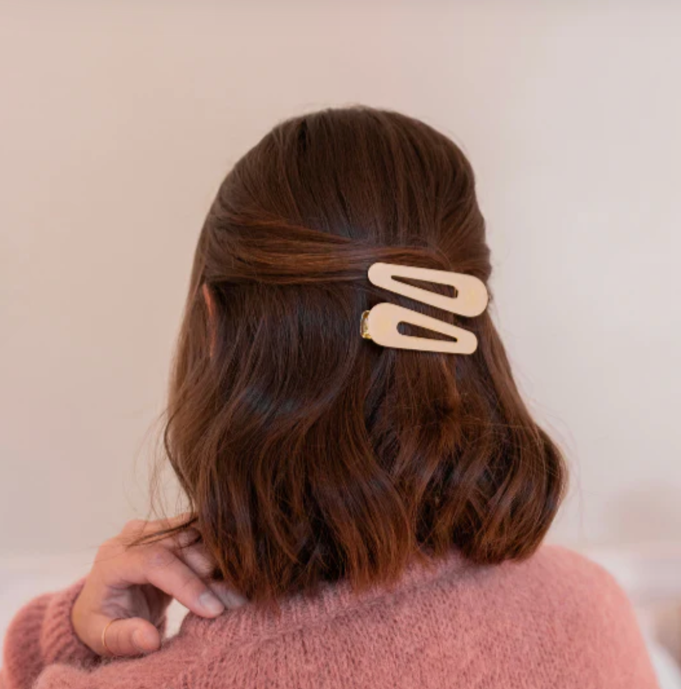 Grâce à un subtil jeu de transparence ces barrettes ivoires subliment toutes les natures et toutes les couleurs de cheveux. Pratiques et élégantes, ces barrettes sont super faciles à installer seule, en un seul clic. À la fois légères et solides, elles ne glissent pas dans les cheveux et tiennent toute la journée grâce à leurs dents qui se fixent aux cheveux sans les arracher ni les abîmer.