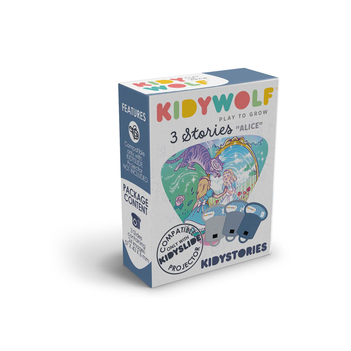 KIDYSTORIES est un ensemble d’histoires conçu pour être utilisé avec la torche à histoires KIDYSLIDE.