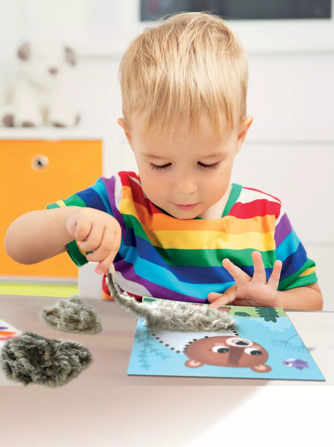 Grâce aux cartes à lacer et à la jolie laine les enfants créeront des douces fourrures d'animaux.