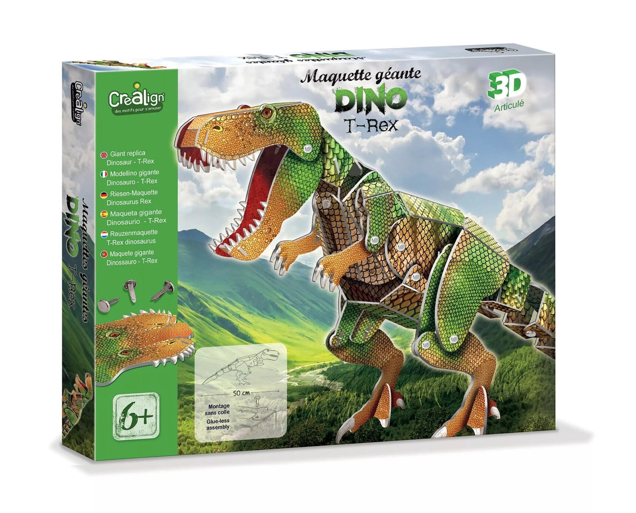 Grâce à ce coffret les enfants pourront créer un T-rex géant et articulé en assemblant les pièces en carton.