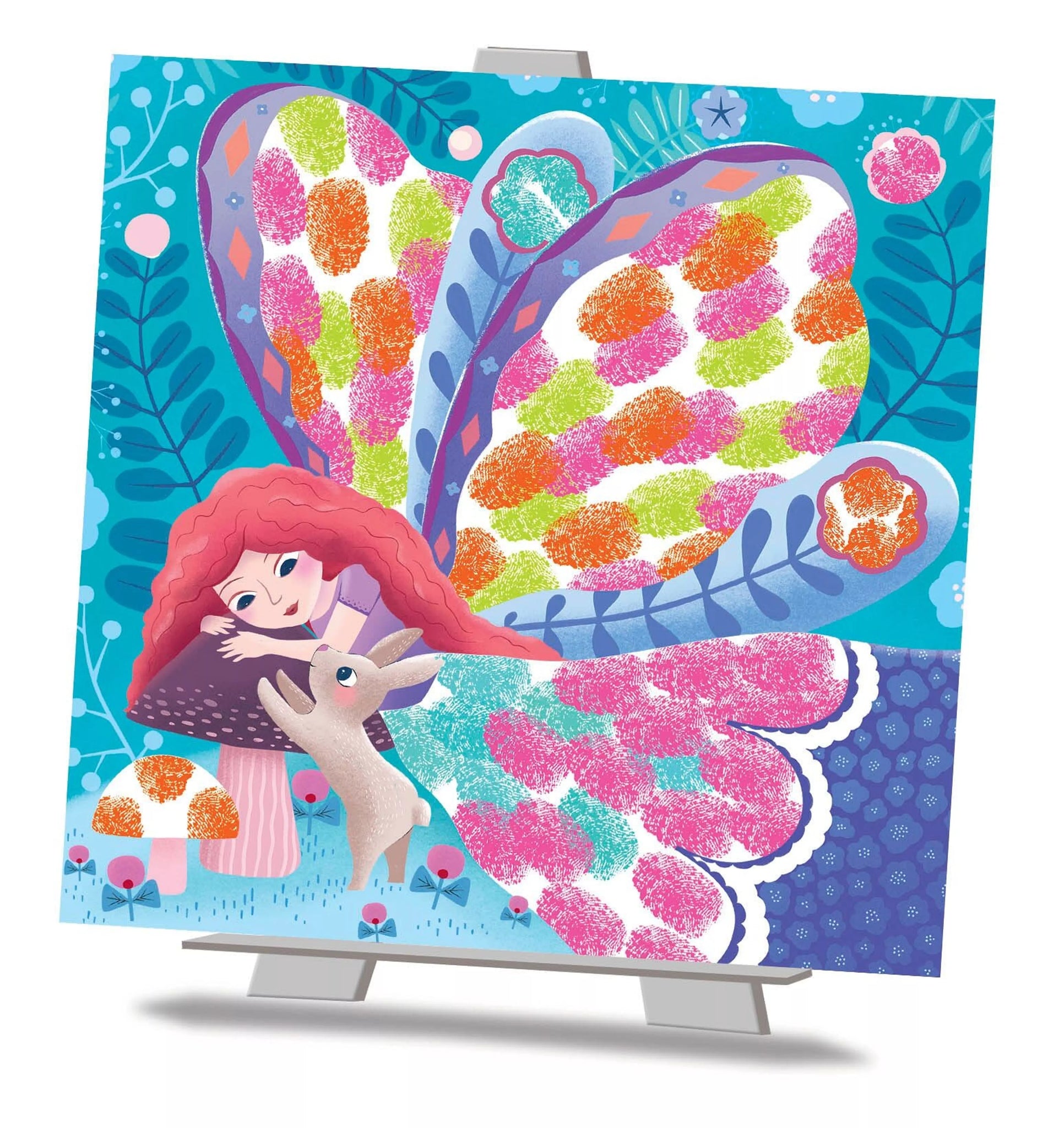 Contient : 6 cartes, 4 encreurs de peinture à doigt, un chevalet et une éponge essuie doigt