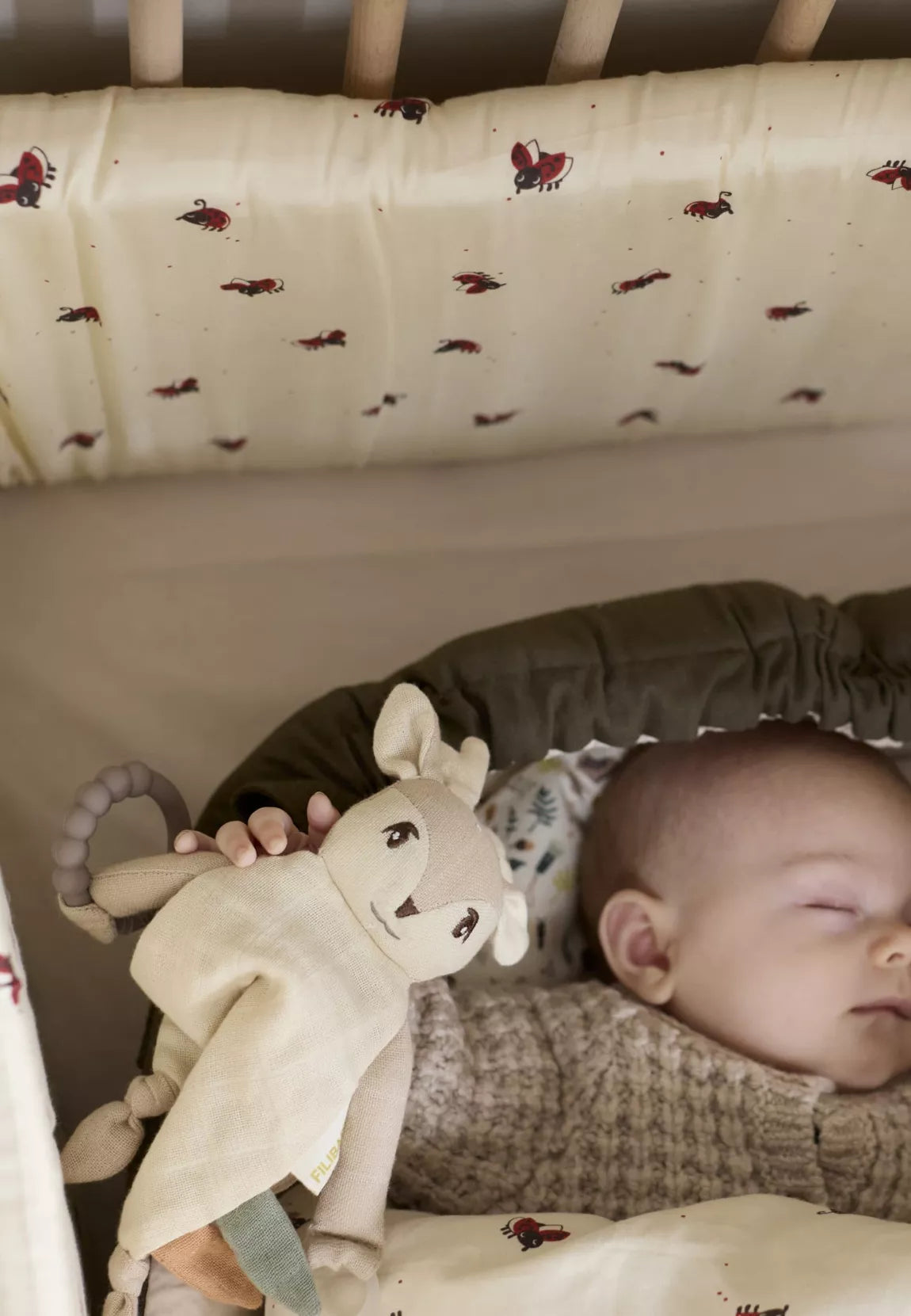 Le doux visage du faon capturera rapidement l'intérêt de bébé, qui pourra explorer tous les détails brodés avec ses petites mains.