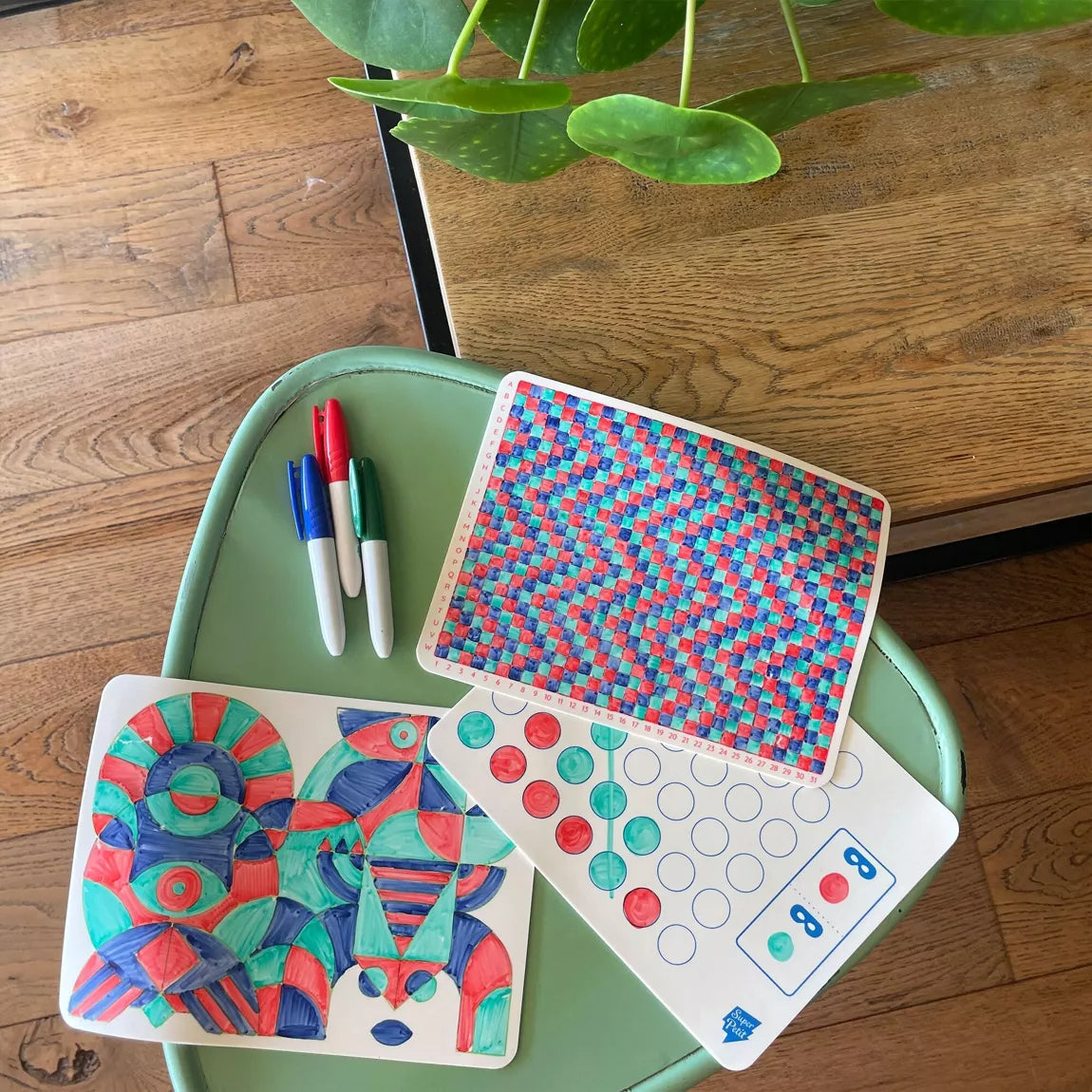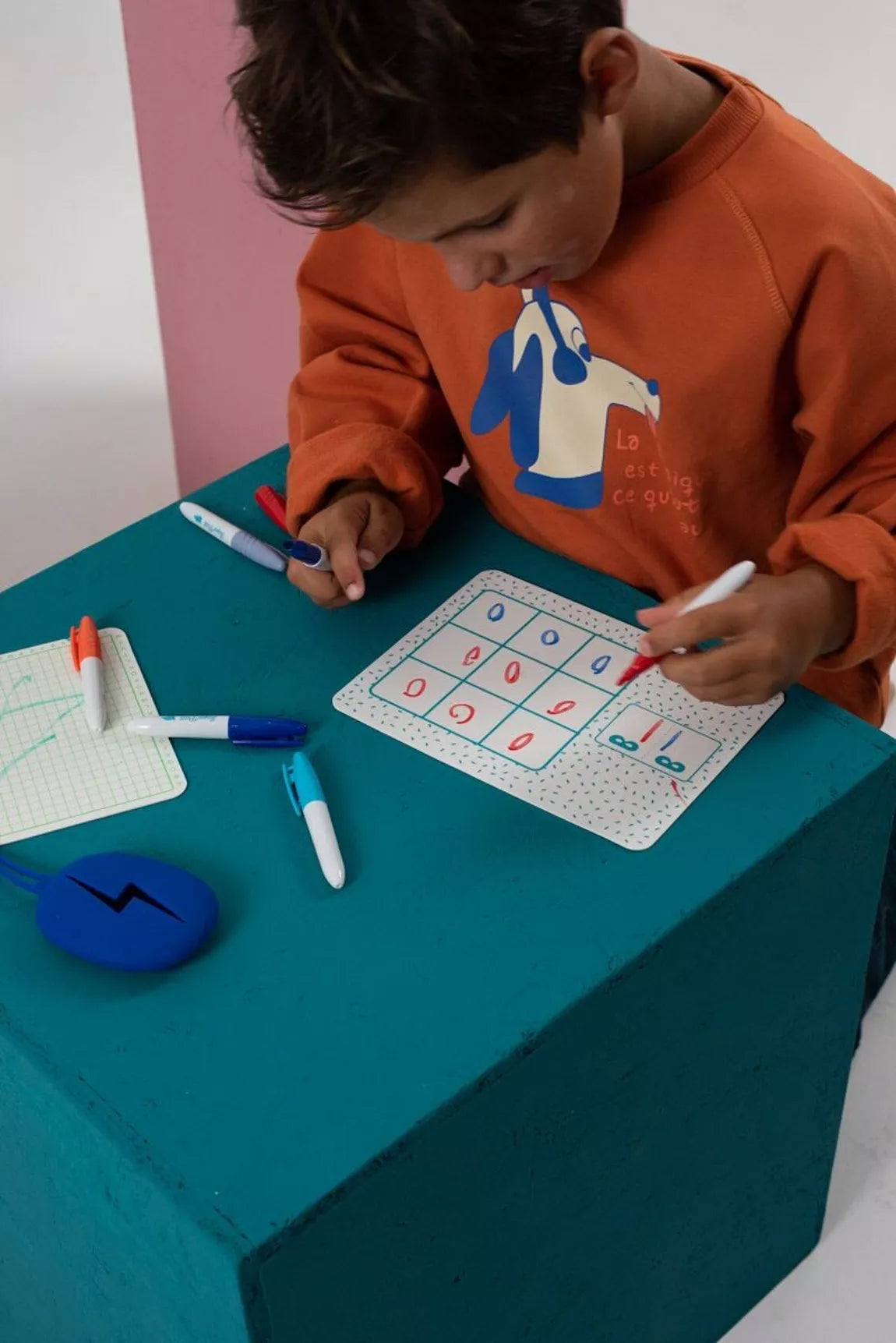 Grâce à ses feutres effaçables sur silicone votre enfant pourra jouer, colorier, effacer et recommencer à l’infini.