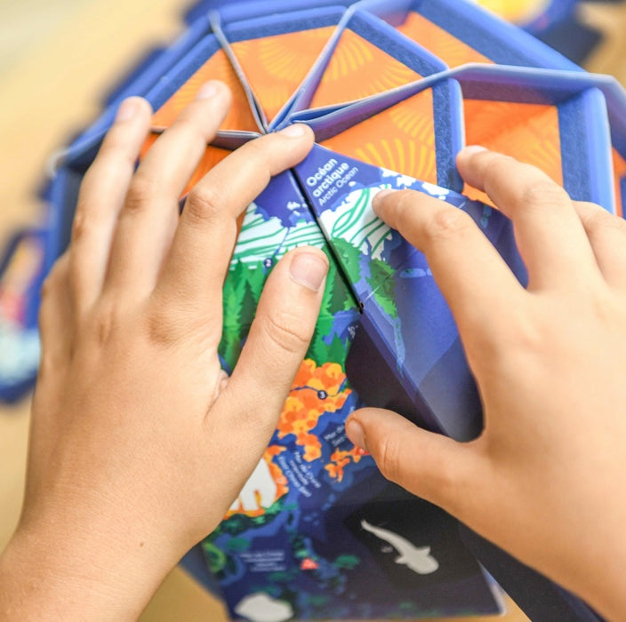 Fabriquer soi-même son premier globe terrestre sans colle ni ciseau : voilà une activité fascinante qui conduira les enfants à découvrir la Terre en volume, à développer leur curiosité et à s’émerveiller des merveilles du monde.