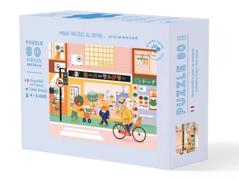 Ce puzzle "Matin paisible au Japon" a été fabriqué en Europe et dessiné pour les enfants par l'artiste Niniwanted, une illustratrice Française. Elle s'inspire beaucoup du Japon et de ses voyages dans ce pays. Son univers est joyeux et coloré!